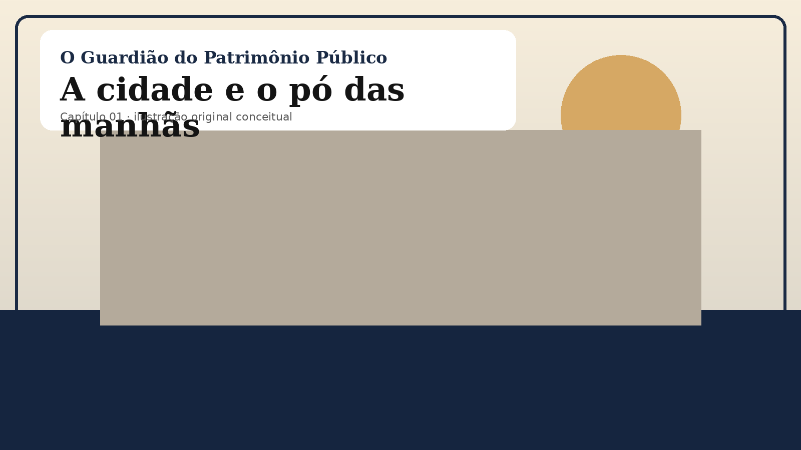 A visualidade deste capítulo foi concebida de modo original e simbólico: Figura do guardião simbólico olhando a cidade, luz de amanhecer. A escolha por ilustrações ficcionais evita uso de imagem real e reforça o caráter literário da obra.